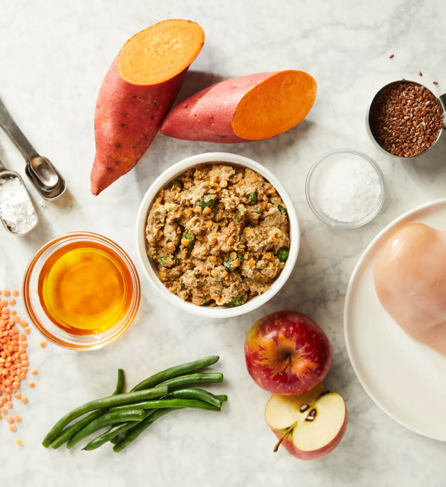 Na DogDev, não fazemos comida de cachorro. Fazemos comida para cachorros. Nossas refeições são feitas com ingredientes alimentares integrais de alta qualidade, de qualidade humana, que são mais biodisponíveis do que recheios e outros ingredientes de baixa qualidade. Preparamos e cozinhamos nossas refeições nas cozinhas residenciais, da mesma forma que a comida humana é feita. Cada refeição é recheada quente para garantir a segurança e congelada rapidamente para manter o frescor.